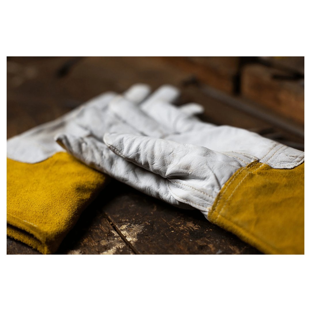 • Cowhide split leather backhand with 4 ½  split leather cuff