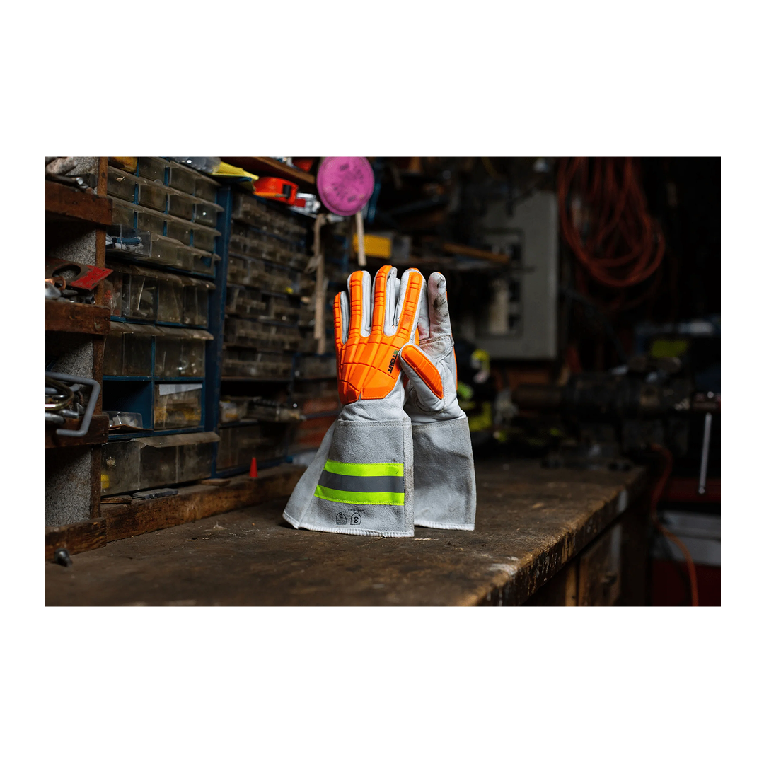 • Split grain gauntlet cuff with Hi-Vis reflective stripe